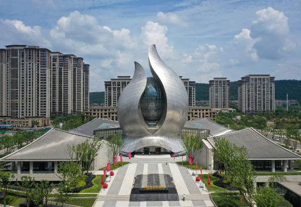 中間高起猶如破土而出的“種子”,被水波狀的“葉片”包裹著向天際延伸,合院環(huán)繞其四周,仿佛一幅建筑山水的絕妙圖景,點(diǎn)亮整個(gè)光谷。位于武漢東湖高新區(qū)的中國建筑科技館,在藍(lán)天白云映襯下格外搶眼。暑期,這里成為青少年觀眾游覽、研學(xué)的最佳選擇之一。