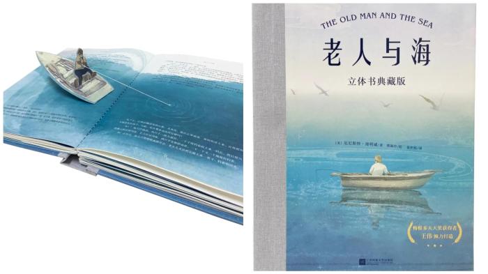 《走近三星堆》是一本極具視覺震撼力的三星堆全景紙藝立體書,它用7個立體跨頁,帶領讀者在探尋中揭開古蜀國的神秘面紗,全面呈現(xiàn)了三星堆的考古發(fā)掘歷程和三星堆文明的大致面貌,還對三星堆遺址第二輪考古發(fā)掘的初步成果做了概要性的介紹,并融入了很多考古小知識,其入選“2022年度中國好書”,并成為首個入選該獎項的立體書。《老人與?!肥鞘撞恳粤Ⅲw書形式呈現(xiàn)的諾貝爾文學獎作品,全書共有20余個精巧可動的立體紙藝裝置,在不弱化名著原文的基礎上,將立體插畫融入書中,二者相輔相成,既能讓讀者體驗到傳統(tǒng)閱讀的樂趣,又能夠沉浸于豐富的立體紙藝場景中。