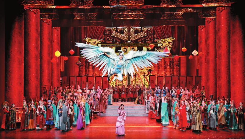 戲劇月的開幕大戲是詩樂舞大秀《天下歸心》,作品在舞臺空間上立體展示了濃郁國風(fēng)特色的時空布局和視覺風(fēng)格,劇場內(nèi)敦煌飛天式實景呈現(xiàn),“詩”有相、“樂”有形、“舞”傳神,再現(xiàn)了雁門關(guān)外的金戈鐵馬,以德化民的泰安繁榮,流傳千年的文景之治……作品通過大漢王朝和匈奴之間在雁門關(guān)地域,從戰(zhàn)爭到盟約、再到通婚的歷史故事,表現(xiàn)出“天下一家”的理念。觀眾身臨其境地享受到了一場不可多得的視聽和精神盛宴。該劇也是忻州大劇院建成以來首次對外公開演出。