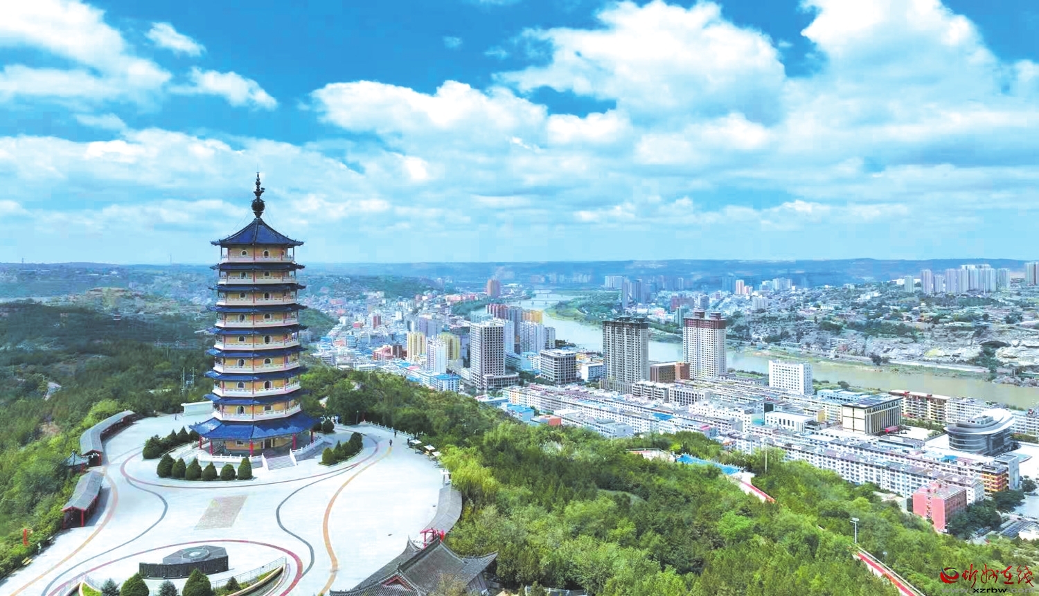 登塔遠(yuǎn)眺,黃河如綠綢帶纏繞晉陜峽谷,黃土高原上的溝壑如大地掌紋,保德城煙火與山河雄奇交融,讓人嘆服晉西北的壯美與溫柔。檐角風(fēng)鈴輕響,把山與城的故事,講給每個登高者。