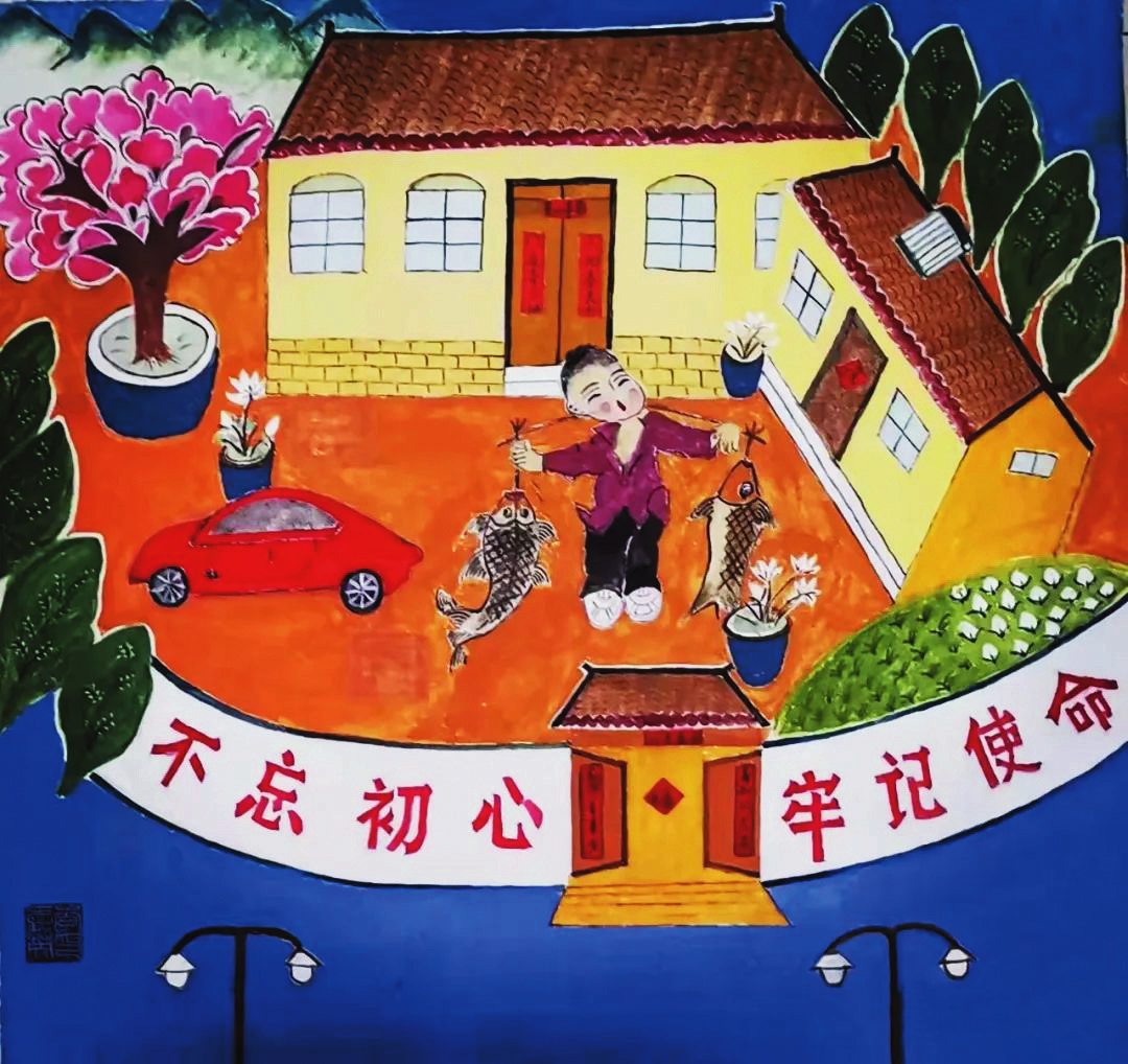 她們的作品,取材于農(nóng)村、農(nóng)業(yè)、農(nóng)民生活,或表現(xiàn)美好的生活場景,或反映豐收的喜悅,或體現(xiàn)鄉(xiāng)愁,在表現(xiàn)手法上采用大膽的夸張、變形,巧用艷麗的色彩,人物刻畫細致入微,內(nèi)心喜悅躍然紙上,富有鮮明的地方特色。綜觀她們的作品,無不展現(xiàn)了社會主義新農(nóng)村在新時代的新變化、新風(fēng)貌,在傳承和弘揚代縣文化、引領(lǐng)社會主義精神文明建設(shè)方面做出了出色的嘗試與實踐。