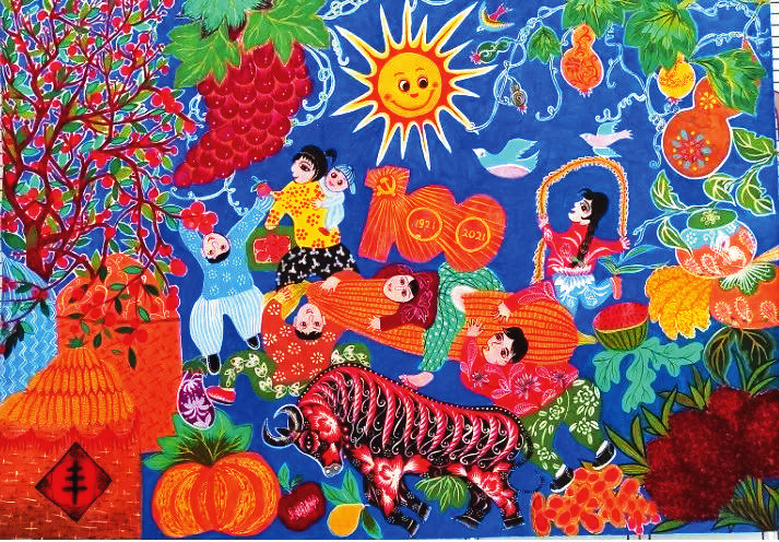 千淘萬漉雖辛苦,吹盡狂沙始到金。這些農(nóng)民畫促進會的女畫家為了創(chuàng)作吃盡了苦,費盡了心,但也在追求藝術(shù)的路上收獲了許多。丁全愛創(chuàng)作的《寒燕兒》《甜》入展山西省群眾文化惠民工程“美麗鄉(xiāng)村”現(xiàn)代農(nóng)民畫優(yōu)秀作品展,《吉祥五寶》《跤娃》《春拂滹沱》入選山西省脫貧攻堅農(nóng)民畫展;戴翠平的《撓閣上來了》被山西省農(nóng)民畫研究會收藏,2020年疫情期間創(chuàng)作的《逆行者》《眾志成城抗疫情》《全球同心抗疫情》均被代縣檔案館收藏;賈永花的《春意盎然》入展山西省群眾文化惠民工程“新農(nóng)村、新氣象”省農(nóng)民畫優(yōu)秀作品展,《農(nóng)家樂》被山西省文化館收藏;祁磊創(chuàng)作的《盛世鼓舞》被評為山西省群眾文化惠民工程“新農(nóng)村、新氣象”省農(nóng)民畫最佳作品;在中國農(nóng)民畫研究會2022年“虎虎生威慶冬奧”專題云展活動中,丁全愛、王粉玲、戴翠平、孫瑰峰、戴永蓮、柳尚艷六位畫家的作品被選中入展……她們的作品先后在《山西日報》《忻州日報》專欄刊登,逐漸被省內(nèi)外的行家和廣大農(nóng)民畫愛好者所認可,釋放出濃烈的彩墨馨香。(劉 睿)
