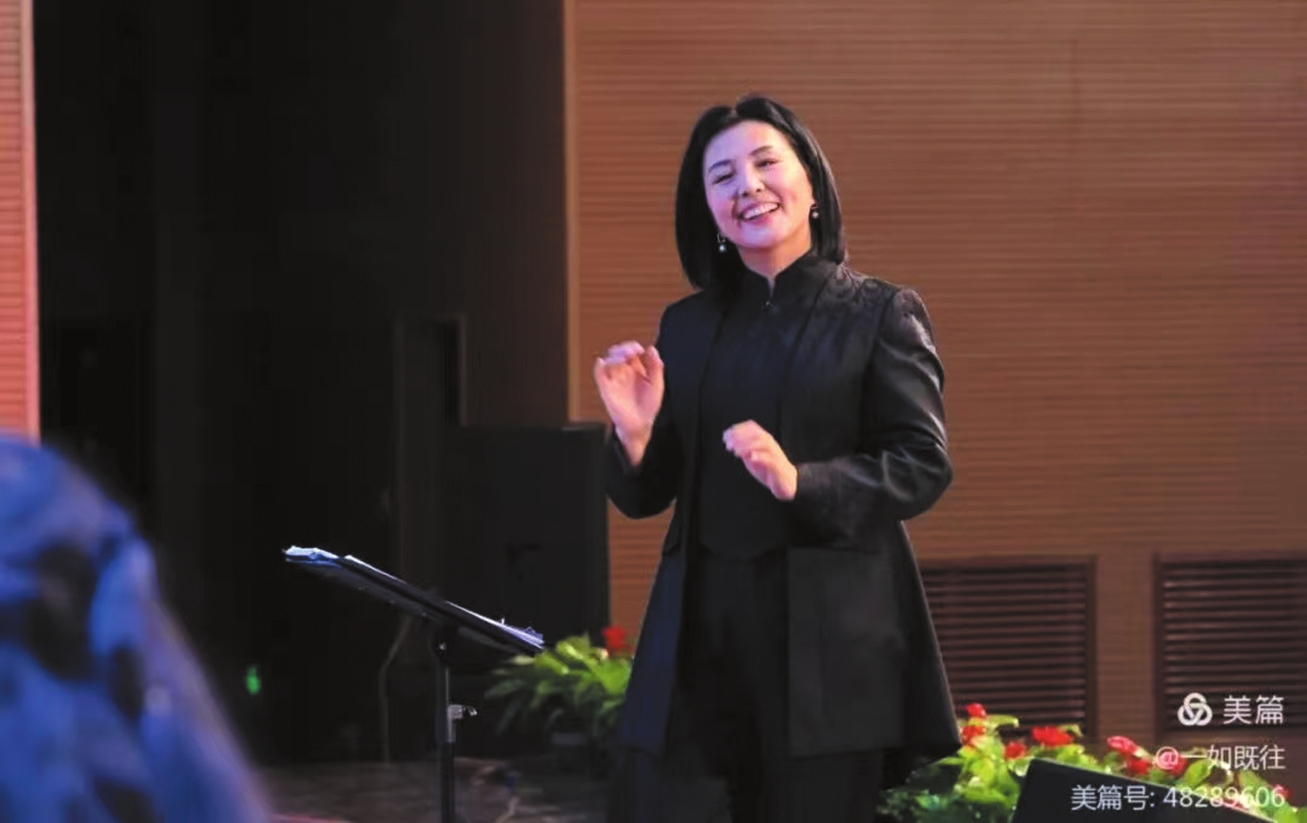 趙桂珍老師身著正裝,目光灼灼,舉手投足間盡顯專業(yè)風(fēng)范。抬手示意預(yù)備,她的動(dòng)作行云流水、起收自如,每一個(gè)指揮手勢、每一種情緒表達(dá)都極具感染力。成員們層次豐富的和聲如溪流匯聚,奔涌向前,從《九兒》的如泣如訴到《壯美延安》的恢宏壯闊,深情的余音未散,鏗鏘的旋律已奔涌而至。隨著最后一個(gè)音符落下,臺(tái)下掌聲久久不息。