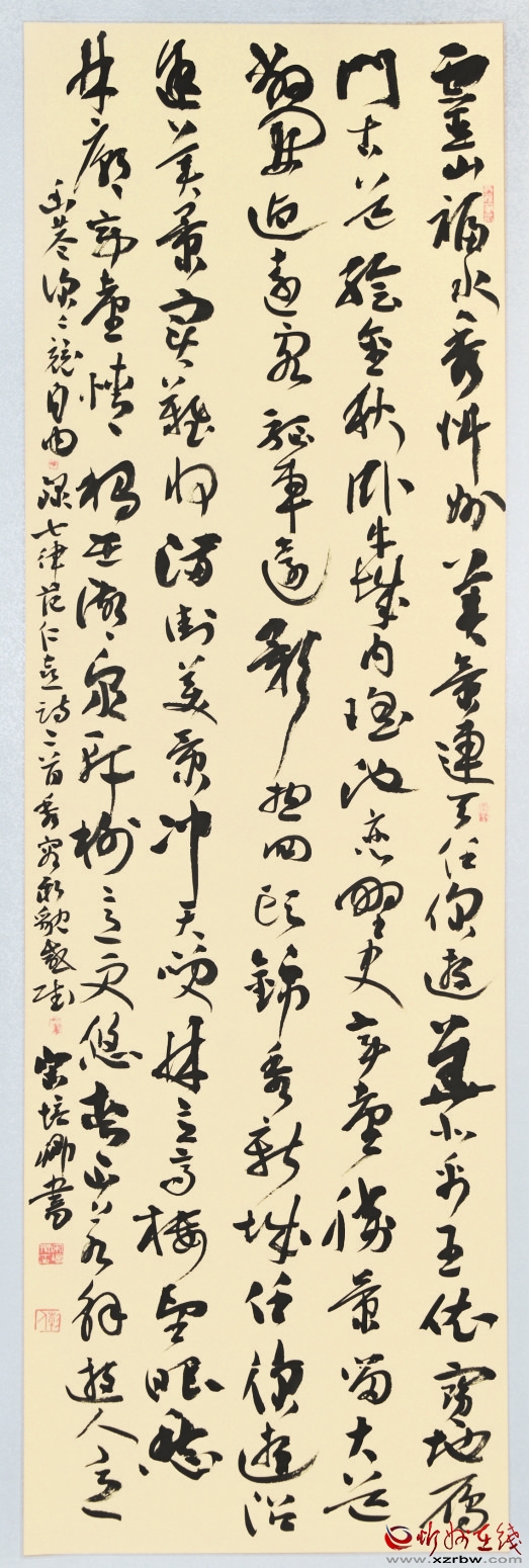 據(jù)悉,今年5月,忻州市文聯(lián)面向全市書畫界征集主題書畫作品,同時向書畫名家進(jìn)行約稿,征集書法作品271件,美術(shù)作品30件。經(jīng)過公正嚴(yán)格組織評選,最后入選展覽作品80余件。作品藝術(shù)形式多樣,諸體兼?zhèn)洌瑯?gòu)思新穎,具有較高的思想性與藝術(shù)性,從書法繪畫的視野,展現(xiàn)出太忻一體化經(jīng)濟(jì)區(qū)建設(shè)的進(jìn)程,充盈著高雅的藝術(shù)格調(diào)和鮮活的時代氣息。