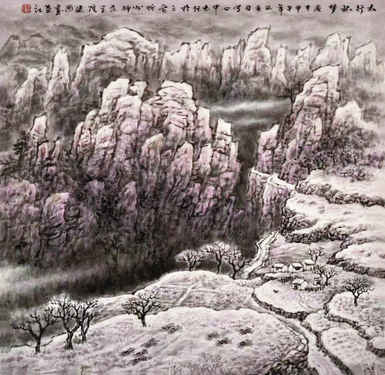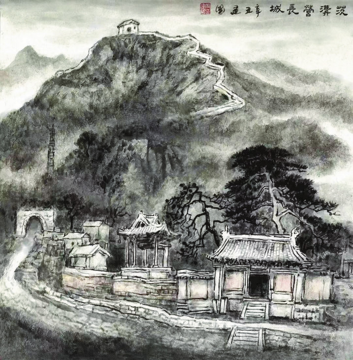 周建國(guó)對(duì)中國(guó)山水畫有著獨(dú)特見解,出版過畫集《中國(guó)美術(shù)名家精品鑒賞·周建國(guó)作品集》。他的創(chuàng)作之路主要分為兩個(gè)時(shí)期,前期追求中西融合,后期則回歸傳統(tǒng)。前期作品《曉月》《古原除夕》《月色》等,多取材于黃土高原,真切流露出其對(duì)黃土地的深情厚愛:早上飄起的炊煙演繹著百姓的勤勞,喧鬧的腰鼓彰顯著鄉(xiāng)民熱愛生活的豪情,晨起上課的學(xué)生更是承載著當(dāng)?shù)厝藵M滿的希望。周建國(guó)將黃土地上的一草一木皆升華為獨(dú)特且富有個(gè)性的生命體,畫面處理側(cè)重將西方油畫的光影巧妙融入作品,寓動(dòng)于靜,動(dòng)靜相宜,彰顯“高貴的單純,靜穆的偉大”的內(nèi)在張力。同時(shí)將傳統(tǒng)山水繪畫的造型、空間結(jié)構(gòu)、筆法設(shè)色皆進(jìn)行改變——黃土溝壑的幾何化處理、筆墨色調(diào)的反復(fù)拿捏、耐人尋味的空間布局,都體現(xiàn)了其特殊的創(chuàng)作理念。相較前期,周建國(guó)后期的作品更加注重對(duì)內(nèi)在美的挖掘,如《風(fēng)月同天》《家園》《和諧家園》《生息之地》《太行月色》等代表作品,表達(dá)對(duì)祖國(guó)山河大川的熱愛,走“外師造化,中得心源”之道,畫風(fēng)趨向率真,試圖突破中國(guó)山水繪畫的表象審美,追尋深層意義的表達(dá)。