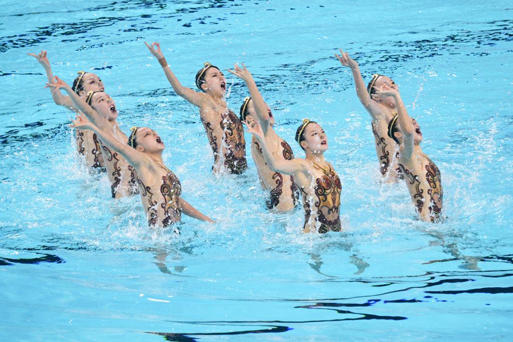 22日晚,2025年游泳世錦賽花游集體技術(shù)自選決賽,預(yù)賽排名第一的中國隊最后登場。中國隊沿用了世界杯總決賽時的“悟空”主題,比賽中姑娘們頭戴金箍,化身“天命人”,伴隨著《黑神話·悟空》的配樂,在水中翩翩起舞。