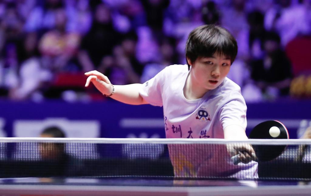 當(dāng)天上午的女團(tuán)比賽中,深圳大學(xué)隊(duì)與華東理工大學(xué)隊(duì)展開對(duì)決,盡管孫穎莎休戰(zhàn),深圳大學(xué)隊(duì)仍以大比分3:1取勝。蒯曼挑起大梁,她先是首場(chǎng)女雙搭檔平野美宇以3:0戰(zhàn)勝?gòu)埾栌?金夢(mèng)妍,之后又出戰(zhàn)第三場(chǎng)女單,以3:0輕取金夢(mèng)妍,幫助深圳大學(xué)隊(duì)贏下兩分。