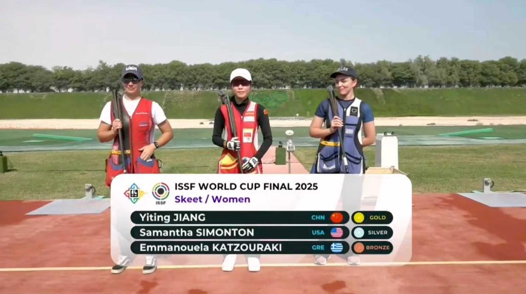 新華社多哈12月8日電 2025年國(guó)際射聯(lián)世界杯總決賽8日在多哈收官,中國(guó)選手江伊婷在女子雙向飛碟決賽中彈無(wú)虛發(fā),以36靶全中的成績(jī)奪冠。中國(guó)隊(duì)最終以4金2銀3銅位居獎(jiǎng)牌榜榜首。