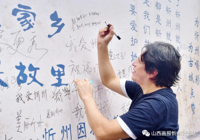 “走遍千山萬水,還是忻州最美”“來了忻州就是忻州人,來過忻州就是忻州人”“愛國當(dāng)愛家鄉(xiāng) 興邦先興故里”……墻上的一句句充滿情感、生動(dòng)質(zhì)樸的語言,寫滿了對祖國、對家鄉(xiāng)的濃濃熱愛,引起了過往游客路人的深深共鳴。游人們有的在這些文字旁簽名,有的合影留念,有的文思泉涌寫下一條條深情寄語,盡情表達(dá)著對忻州發(fā)展的美好祝福和共建全國文明城市的堅(jiān)定信心。