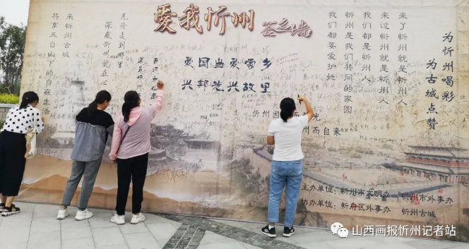 在遺山公園舉行志愿活動(dòng)的志愿者們興奮地簽下名字后這樣說:“忻州是我們共同的家園,創(chuàng)建文明城市人人有責(zé)。今天我們在此寫下了自己的名字和對家鄉(xiāng)的深深祝福,這是一面見證墻,更是一面承諾墻,相信忻州會(huì)越來越好!”