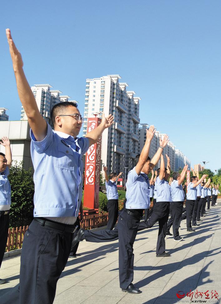9月3日,市體育局在全市組織開展的“文明忻州、全民健身”系列活動拉開了帷幕。圖為作為我市首批健身示范單位的市公安局、市人民檢察院、市中級人民法院正在組織全體干警職工做工間操。(張存良 攝影報道)