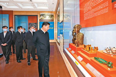 7月16日,中共中央總書記、國家主席、中央軍委主席習近平在中央禮品文物管理中心參觀“友好往來 命運與共——黨和國家領導人外交活動禮品展”。新華社記者 李學仁 攝