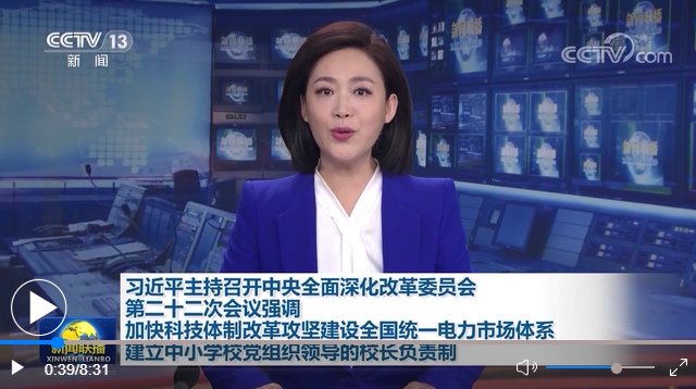 加快科技體制改革攻堅建設全國統(tǒng)一電力市場體系 建立中小學校黨組織領導的校長負責制