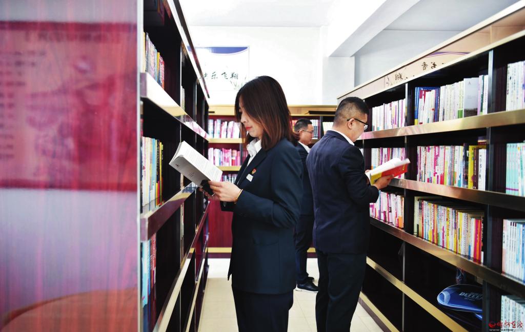 近日,五臺農(nóng)商行舉辦讀書活動。設(shè)施齊全、安靜溫馨、滿溢書香的閱覽室,為大家營造了一個(gè)良好的讀書氛圍。愛讀書、讀好書、善讀書已成為員工們的一種生活常態(tài)。(閆澤峰 攝)