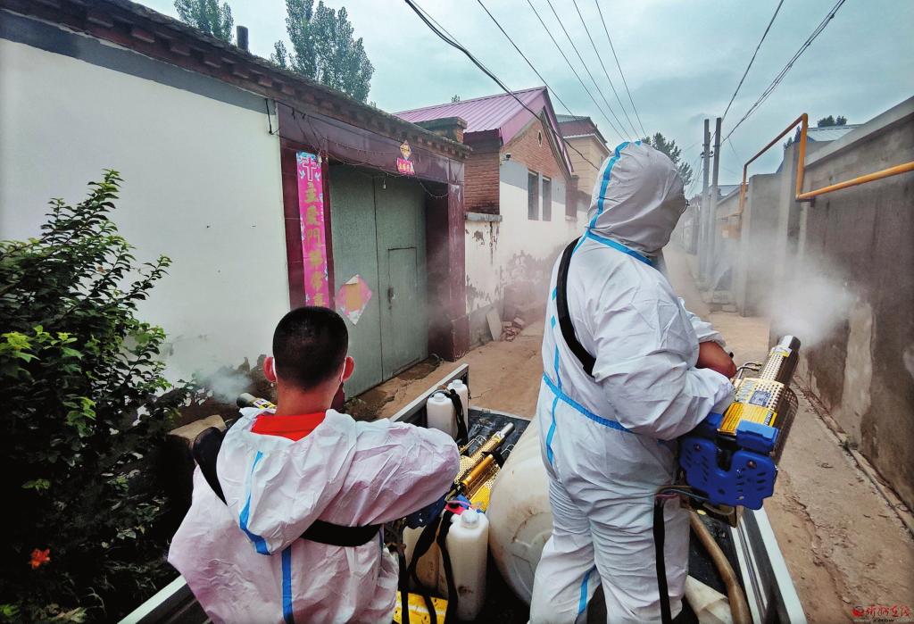 河北涿州發(fā)生暴雨洪澇災(zāi)害后,我市天龍救援隊(duì)響應(yīng)號召,攜帶專業(yè)救援設(shè)備迅速奔赴當(dāng)?shù)鼐仍蠹覜_鋒在前,積極投入抽水、排污、清淤、搬運(yùn)物資、消殺等工作中。圖為8月7日在該市刁窩鎮(zhèn),民盟盟員、救援隊(duì)隊(duì)員王宇龍(右一)和隊(duì)友在進(jìn)行街巷消殺。(焦未軍攝)