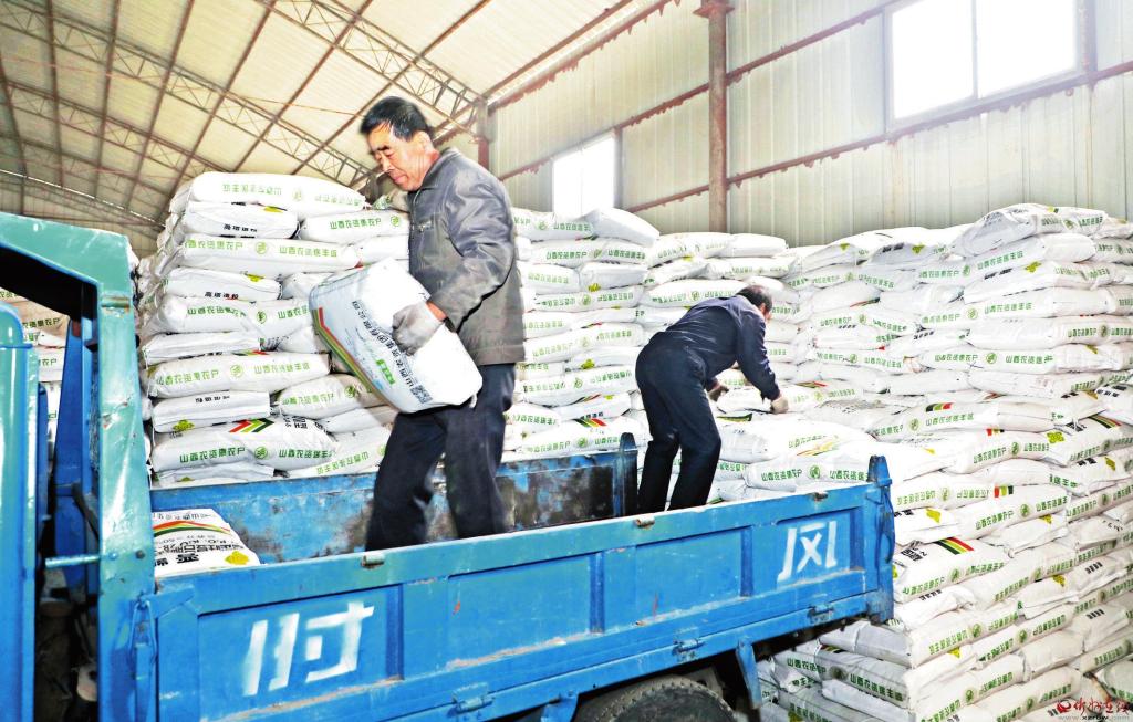 3月14日,在原平市西鎮(zhèn)鄉(xiāng)的山西農(nóng)資國家化肥儲備庫內(nèi),工人正在搬運化肥。原平市組織農(nóng)資公司及時調(diào)配、裝運化肥等春耕物資,保障農(nóng)資市場供應(yīng),引導(dǎo)農(nóng)民搶抓農(nóng)時,投入春耕備耕生產(chǎn),為全年農(nóng)業(yè)生產(chǎn)夯實基礎(chǔ)。 (褚 震攝)