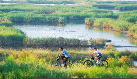 潮涌鹽湖,奮楫逐浪。近年來,運(yùn)城鹽湖結(jié)束了4600多年的食鹽開采史和70年的無機(jī)鹽開發(fā)史,“退鹽還湖”“還湖于民”。從“中國(guó)最大的無機(jī)鹽工業(yè)基地”到知名旅游度假區(qū),從昔日“臟亂差”到而今“城市會(huì)客廳”,千年鹽湖正變身為人民群眾共享的綠色空間。