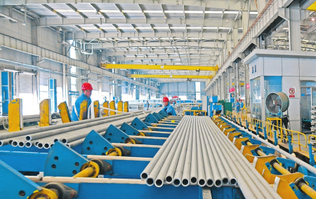 巨大的生產(chǎn)車間內(nèi),機(jī)器轟鳴,一根根坯料經(jīng)過(guò)穿孔、酸洗、拋光、冷軋等近40道工序,變成锃亮堅(jiān)固的不銹鋼管,發(fā)往國(guó)內(nèi)外企業(yè),成為電站、鐵路、新能源、油氣開采等行業(yè)的重要材料。在山西太鋼不銹鋼鋼管有限公司,一系列特色管材產(chǎn)品實(shí)現(xiàn)了在重大裝備上的突破性應(yīng)用,提高了太鋼鋼管產(chǎn)品的美譽(yù)度和競(jìng)爭(zhēng)力。