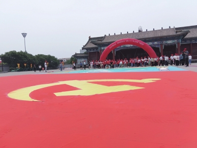 7月2日,我市十幾位沙畫藝術(shù)工作者,在崇福寺廣場用沙畫藝術(shù)的方式向黨的二十大獻(xiàn)禮。一丟、一刮、一勾、一點,旋出他們青春的足跡,畫出對黨和祖國的溫馨祝福。他們用了4個多小時、耗費了300多公斤細(xì)沙,繪出了黨旗的巨幅沙畫,“喜迎二十大”六個大字相襯下方,黃色的華表、雄偉壯麗的長城、遨游的飛行員、憨憨的冰墩墩更是活靈活現(xiàn)、躍然眼前。