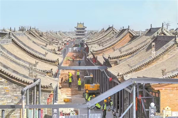 設(shè)置臨時(shí)橋架,改遷水、電、網(wǎng)絡(luò)線路,請(qǐng)專家勘察監(jiān)測(cè)、制定優(yōu)化施工方案,分區(qū)分段、多點(diǎn)錯(cuò)峰……參建人員在不破壞古城原貌的情況下,努力采取不同方式為每條街巷重塑地下經(jīng)絡(luò)。在多方努力下,改造項(xiàng)目已經(jīng)如期完工。平遙縣委書記魏江峰表示,項(xiàng)目著眼于改善古城民生和旅游品質(zhì),既涉及古城文物保護(hù)、民居安全防護(hù),又涉及居民民生保障、旅游秩序維護(hù),因此在施工過程中以更高標(biāo)準(zhǔn)、更嚴(yán)要求和更實(shí)措施,做細(xì)做優(yōu)安全服務(wù)工作,讓古城居民和游客早日受益。