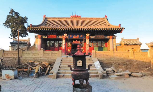 東關(guān)關(guān)帝廟位于原平市崞陽鎮(zhèn)東關(guān)村,距崞陽城東門外約100米。始建年代不詳,據(jù)正殿梁架題記載,清咸豐三年(1953)重修,現(xiàn)存建筑為清代遺構(gòu)。東西長25.5米,南北寬87米,占地面積2218平方米。坐北朝南,二進(jìn)院落布局,中軸線建有影壁、大門、正殿和圣母殿,兩側(cè)為東西配殿。正殿磚砌臺基,前設(shè)月臺,其上三面設(shè)勾欄、望柱,欄上雕有各種花卉、如意及禽獸。殿身面寬三間,進(jìn)深六椽,單檐懸山頂。七檁前后廊式構(gòu)架,斗拱五踩重翹,平身科每間一攢,出45度斜拱,前檐各間均設(shè)四扇六抹萬字紋格扇門,殿內(nèi)新塑像3尊。圣母殿磚砌臺基,殿身面寬三間,進(jìn)深三椽,單檐硬山頂,四檁前廊式構(gòu)架。明間四扇六抹萬字紋格扇門,次間為格扇窗。殿內(nèi)新塑像3尊。廟內(nèi)存清代重修關(guān)帝廟碑3通,殘碑1通,石獅2對。1981年列為原平市(縣級)文物保護(hù)單位。2022年列為第三批市級文物保護(hù)單位。