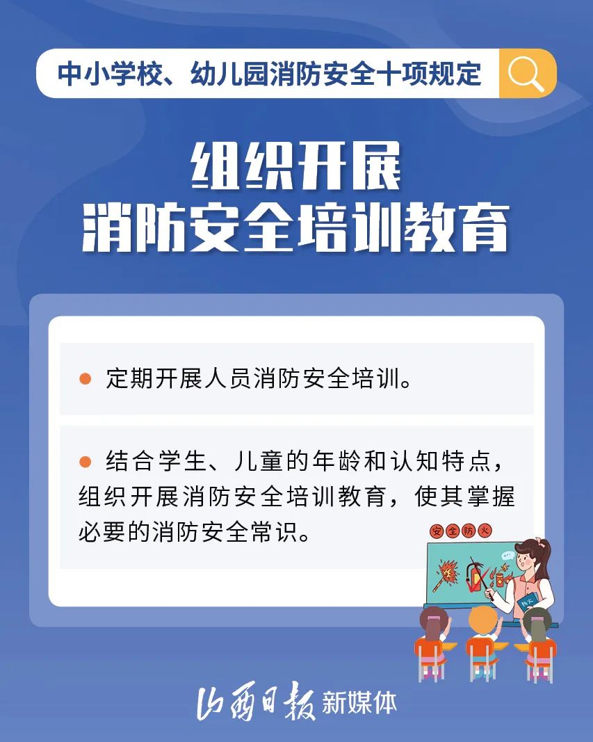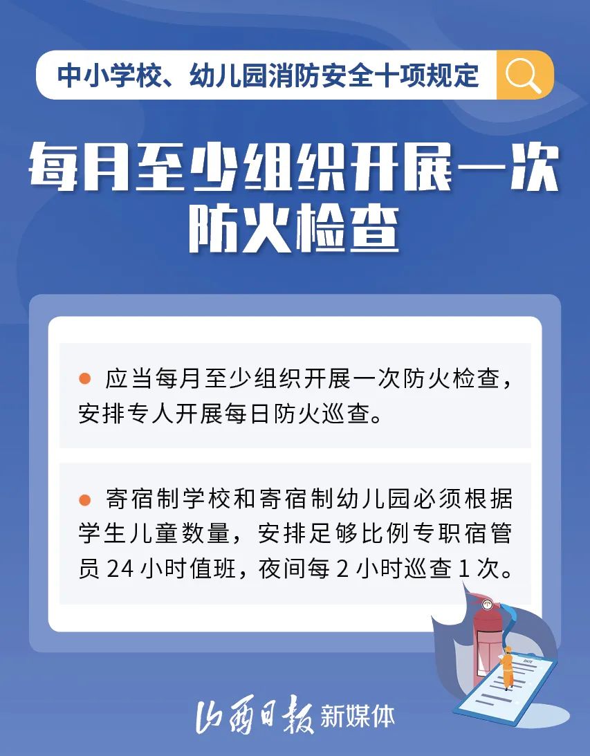 為加強(qiáng)中小學(xué)校、幼兒園消防安全管理,近日,教育部、國家消防救援局研究制定了《中小學(xué)校、幼兒園消防安全十項(xiàng)規(guī)定》,具體規(guī)定內(nèi)容如下。