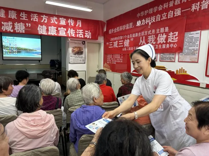 不出院門就能享受到免費(fèi)體檢,太方便了! 我這高血壓十幾年了,張醫(yī)生會(huì)定期上門給我量血壓,還給我科普慢病知識(shí)。 太原市杏花嶺區(qū)杏花嶺街道山醫(yī)大二院社區(qū)于2022年被評(píng)為“全國(guó)示范性老年友好型社區(qū)”,在山醫(yī)大二院社區(qū)、山醫(yī)大二院老干部科和杏花嶺社區(qū)衛(wèi)生服務(wù)中心三方管理和服務(wù)下,轄區(qū)內(nèi)的老年人實(shí)現(xiàn)了不出院門,就能享受到便捷的醫(yī)療服務(wù)。 定期體檢、慢病管理 為老年人的健康保駕護(hù)航 “你的血糖最近控制得挺穩(wěn)定,飲食上還是要多注意……” 3月29日上午,走進(jìn)山醫(yī)大二院社區(qū)內(nèi)的慢病管理工作室,66歲的張秀萍正在給患有糖尿病的老人做定期體檢,同時(shí)進(jìn)行健康宣教服務(wù)。 張秀萍退休前是山醫(yī)大二院發(fā)熱門診的一名護(hù)士長(zhǎng),退休后被返聘回杏花嶺社區(qū)衛(wèi)生服務(wù)中心成為家庭醫(yī)生的一員。2017年,為了能給更多行動(dòng)不便的老人提供健康管理服務(wù),張秀萍將體檢服務(wù)搬到了老年居民家門口,在社區(qū)內(nèi)的山醫(yī)大二院的老干部科活動(dòng)室成立了慢病管理工作室,同時(shí)為65歲以上老年人提供常態(tài)化體檢服務(wù)。