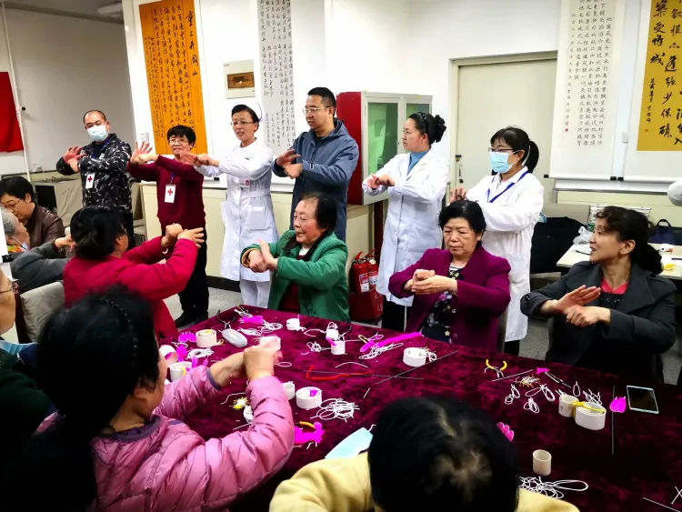 ▲“織夢(mèng)”活動(dòng)小組 “我們還會(huì)定期為老年人開展美發(fā)服務(wù)、智能手機(jī)培訓(xùn)班、古琴班講座等活動(dòng),其中最受大家歡迎的還是我們科室成員自創(chuàng)開發(fā)的健腦手指操?!鄙结t(yī)大二院老干部科科長(zhǎng)李曉峰介紹,“手指操”創(chuàng)編出來后,每天下午在大院廣場(chǎng)上,有的高齡老人坐著輪椅來做操,有的老人在家里隔著玻璃做操,可謂是風(fēng)靡一時(shí)。這項(xiàng)活動(dòng)除了能鍛煉老年人的手眼協(xié)調(diào)能力、專注力和記憶力,還能延緩?fù)嘶俣取?/p>