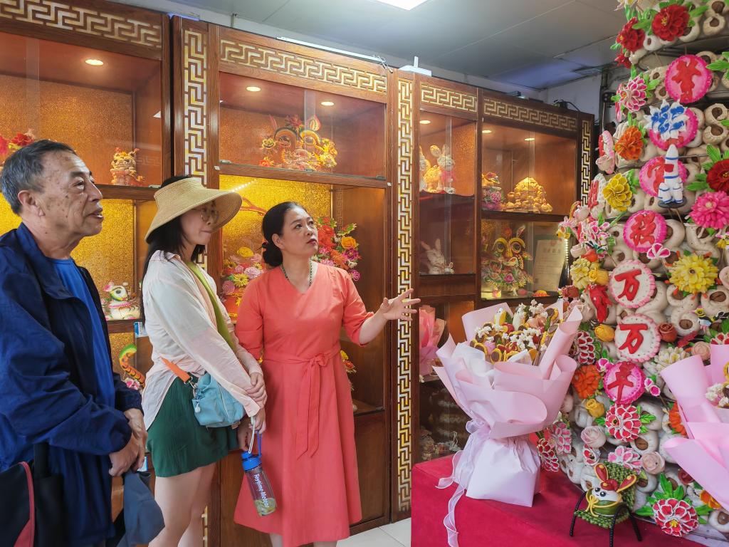 新華社西安6月19日電(記者孫正好)“沒想到一個(gè)面團(tuán),能被玩出這么多花樣!”在陜西韓城古城歷史文化街區(qū)的一家花饃店內(nèi),北京游客王華對(duì)著造型各異的韓城花饃發(fā)出感嘆。