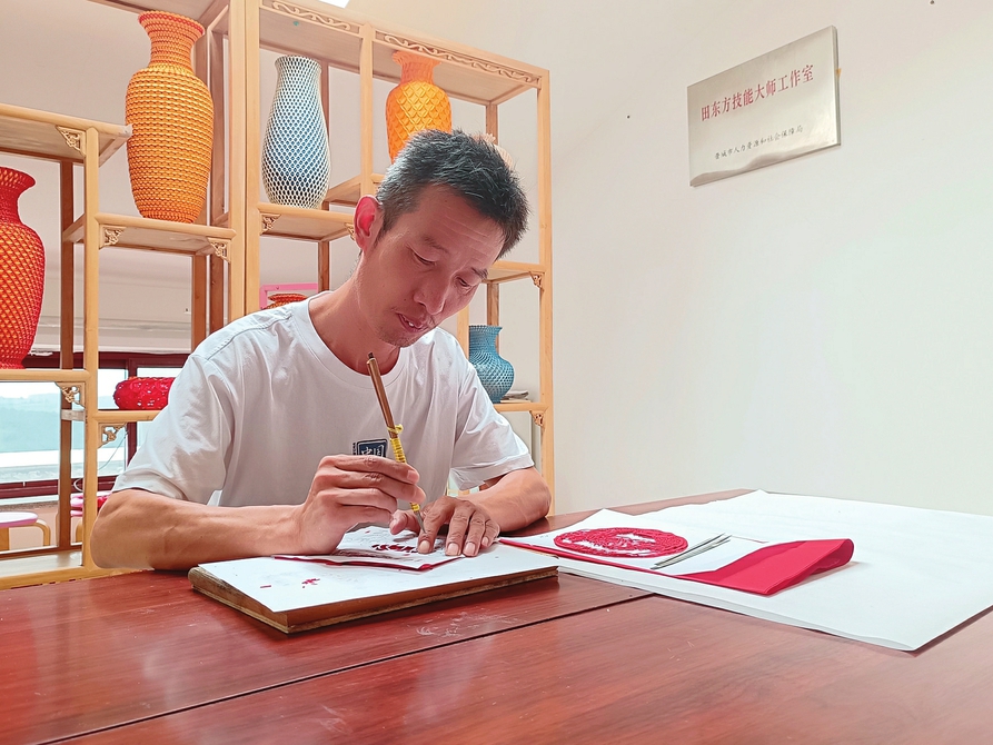 田東方正在創(chuàng)作“陵川剪紙”。吳艷斐攝 一把刻刀、一張彩紙,通過靈動的雙手,創(chuàng)造出無數(shù)令人驚嘆的藝術作品。或是一幅花鳥圖,鳥兒栩栩如生,線條顯現(xiàn)生機;或是一幅山水畫,云海相擁,層次展現(xiàn)豐富……方寸之間,幻化萬千世界。 這正是“陵川剪紙”,真正意義上說是刻紙。省級非物質文化遺產“陵川剪紙”第五代傳承人田東方解釋道,剪紙的歷史可遠溯到春秋時期,僅我省剪紙藝術演變延續(xù)至今已形成不同地方風格流派。以“陵川剪紙”為例,在繼承了民間傳統(tǒng),吸收國畫、版畫、銅鉻畫、布貼等表現(xiàn)手法之外,創(chuàng)作工作主要依靠刀具?!翱碳垖偌艏埛懂牐从诩艏?、精于剪紙。創(chuàng)作時主體以刻刀進行,以剪刀進行部分精修,可以說是剪離不開刻、刻離不開剪,刻剪一體,才能使刻紙藝術發(fā)揮得淋漓盡致?!?/p> “作為純手工制作,刻紙在技法上分陽刻法、陰刻法、陰陽刻法三種,色彩上分單色、套色、填色、染色等。”田東方拿著一個還未完成的作品,向記者介紹著整個工藝流程:第一步是磨刀,“工欲善其事,必先利其器”,在創(chuàng)作作品之前,必須把刻刀打磨鋒利;第二步是打蠟盤,把豆面和蠟按比例攪拌均勻,制作成可以反復使用的蠟盤;第三步是構思,根據(jù)作品主題,查閱各方資料,確定整體構思;第四步是打稿,將構思好的畫面,一筆筆畫在底稿上,將底稿與紅紙夾在一起,方便刻畫;第五步才要進行刻剪,刻的時候手要穩(wěn),刀和紙要垂直,耐心地進行細節(jié)雕琢。 “‘陵川剪紙’展示是以概括的方式來處理自然物象,保留最本質的東西,其余的部分可以去掉,使得畫面有變化,不致單調貧乏。”田東方以桌前一幅《黃圍靈湫》作品為示例,繼續(xù)說道:“你瞧,這幅作品通過點、線、面的表現(xiàn)手法,將黃圍山的遠近景巧妙連接,虛實相應,做到了實處不死板,虛處不空洞?!?/p> 自1998年起,田東方便投身“陵川剪紙”,并逐步形成了自己獨有的剪紙風格,其作品構圖精美、刀工細膩,顯示出深厚的文化底蘊。然而,隨著時代的發(fā)展和科技的進步,傳統(tǒng)剪紙產業(yè)面臨前所未有的挑戰(zhàn)和危機,剪紙的傳承與創(chuàng)新勢在必行。田東方則有自己的一套辦法:那就是突破剪紙材質,創(chuàng)新剪紙形式。 他先后借鑒脫胎漆器、扎刻燈籠、竹編柳編等姊妹藝術,集剪、刻、編、塑于一身,采用傳統(tǒng)的榫卯結構和卡扣原理,成功研發(fā)出具有完全自主知識產權的紙編工藝和紙塑工藝,其中紙編工藝已申請國家專利,打破剪紙千年來只能做平面二維的藩籬。另外,他還研究出具有編織功能的紙?zhí)佼a品,可以編織出很有市場前景的手工包、手提籃、汽車坐墊等,有效推動剪紙藝術從觀賞走向實用。 如今,為了更好地傳承優(yōu)秀傳統(tǒng)文化,把剪紙工藝傳授給更多的人,田東方在陵川工藝美術協(xié)會的幫助下,組建了剪紙文化傳播中心,面向社會招收學員,免費傳授剪紙藝術?!白尭嗳藗鞒小甏艏垺尲艏埑蔀榫哂写硇缘某鞘卸Y物,才能使這一傳統(tǒng)民間藝術煥發(fā)新的生機?!碧飽|方表示。 鄭璐 吳艷斐 (責任編輯:梁艷) |
