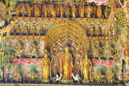 時(shí)光流轉(zhuǎn)近400年后,這些彩塑依舊流光溢彩、璀璨奪目、精美動(dòng)人、完整如新。展翅飛翔的仙鶴、飛動(dòng)騰躍的蛟龍、純潔的蓮花、富麗的牡丹,以及各種奇花異草,無不使人浮想聯(lián)翩、由衷嘆絕。