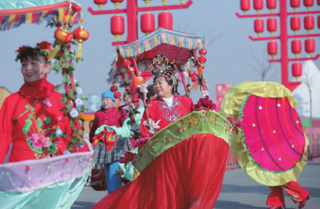圖①小店區(qū)劉家堡劃旱船表演。