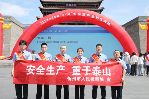今年6月是第24個全國“安全生產(chǎn)月”。為深入貫徹習(xí)近平總書記關(guān)于安全生產(chǎn)工作的重要指示精神,持續(xù)推動“八號檢察建議”落地落實,6月16日,市檢察院黨組副書記、主持日常工作的副檢察長王金華帶隊參加全市“6·16安全宣傳咨詢?nèi)铡被顒?,圍繞“人人講安全 個個會應(yīng)急”主題,積極開展普法宣傳活動,切實提升企業(yè)和群眾安全生產(chǎn)意識和防范能力。
