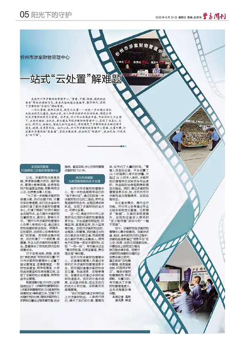 一體化管理、換押式移交、規(guī)范化處置……為進一步加強公安機關執(zhí)法規(guī)范化建設,維護公民、法人和其他組織的合法權益,推進公安機關涉案財物規(guī)范化管理。近年來,忻州市公安局在市委、市政府的大力支持下,主動對接檢、法機關,牽頭建成市級涉案財物管理中心,實現(xiàn)了信息化、無紙化、規(guī)范化、物聯(lián)化、智能化和可追溯化,有效避免了涉案財物在流轉過程中遺失、破損、變質等風險。運行以來,忻州市涉案財物管理中心管理、處置刑事、行政案件涉案財物“零差錯”,實現(xiàn)辦案效率、執(zhí)法規(guī)范“兩提升”,執(zhí)法風險、行政成本“雙下降”。