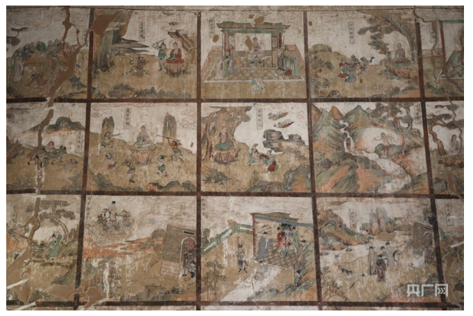 精美絕倫的壁畫、彩塑(央廣網(wǎng)記者 郎麒 攝) 萬(wàn)佛殿,是當(dāng)今中國(guó)現(xiàn)存最古老的木構(gòu)建筑之一,也是鎮(zhèn)國(guó)寺的精華所在,有“千年瑰寶”的美譽(yù)。萬(wàn)佛殿的斗拱結(jié)構(gòu)別具一格,總高達(dá)到174厘米。如此大的一座殿中沒有一根釘子,主要是“斗拱”起了決定性的作用。在中國(guó)古代建筑史上,斗拱的變化極為顯著,它能代表各個(gè)時(shí)期建筑藝術(shù)的程度趨向。