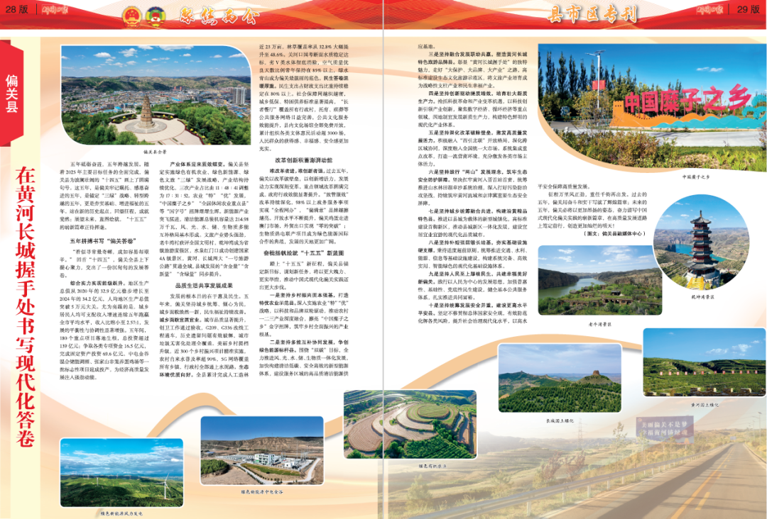 五年砥礪奮進,五年跨越發(fā)展。隨著2025年主要目標任務(wù)的全面完成,偏關(guān)縣為波瀾壯闊的“十四五”畫上了圓滿句號。這五年,是偏關(guān)牢記囑托、感恩奮進的五年,是錨定“三綠”戰(zhàn)略、轉(zhuǎn)型跨越的五年,更是夯實基礎(chǔ)、增進福祉的五年。站在新的歷史起點,回望征程,成就斐然;展望未來,藍圖繪就,“十五五”的嶄新篇章正待揮毫。